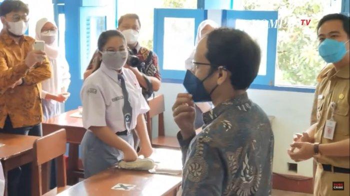 TRIBUNNEWSWIKI.COM - Menteri Pendidikan, Kebudayaan, Riset, dan Teknologi (Mendikbudristek) Nadiem Makarim meninjau pelaksanaan pembelajaran tatap muka (PTM) di Kota Surakarta, Jawa Tengah, Senin (13/9/2021).