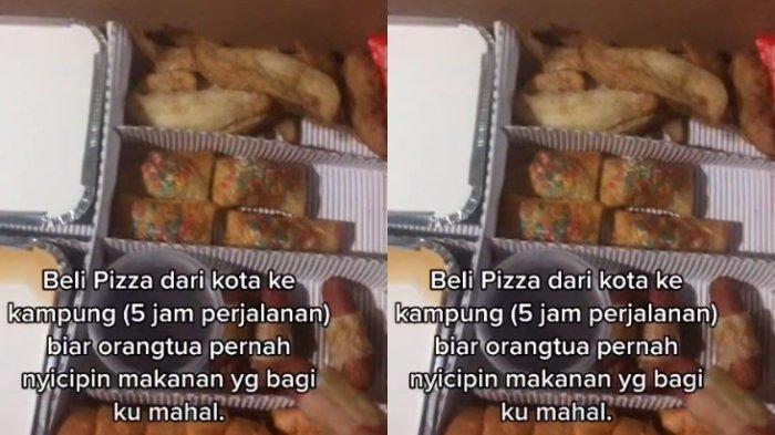 "Beli pizza dari kota ke kampung (5 jam perjalanan) biar orang tua pernah nyicipin makanan yang bagiku mahal," tulis akun itu.
