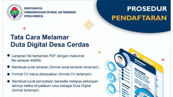 Kementerian Desa, Pembangunan Daerah Tertinggal, dan Transmigrasi (KDPTT) Republik Indonesia membuka seleksi Penerimaan Duta Digital tahun 2021.