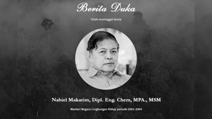 Segenap Keluarga Besar Kementerian Lingkungan Hidup dan Kehutanan turut berdukacita atas berpulangnya Bapak Nabiel Makarim (Menteri Lingkungan Hidup 2001-2004)," tulis Kementerian LHK, seperti dikutip TribunnewsWiki, Sabtu (23/10/2021).
