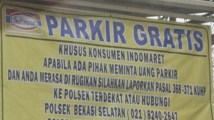 TRIBUNNEWSWIKI.COM - Sebuah foto yang memperlihat spanduk “parkir gratis” di salah satu gerai Indomaret di Bekasi mendadak viral di media sosial.