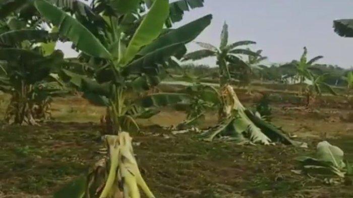 Kemudian pada video kedua tampak sebuah kebun yang penuh dengan pohon pisang yang rusak.