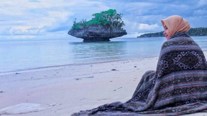 Di pantai ini hamparan pasir putih dan tebing menjadi suguhan utamanya.