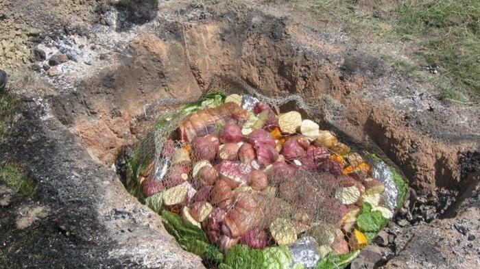 Setelah itu, bahan itu diletakkan ke dalam lubang yang telah diberi batuan panas kemudian dikubur. (1)