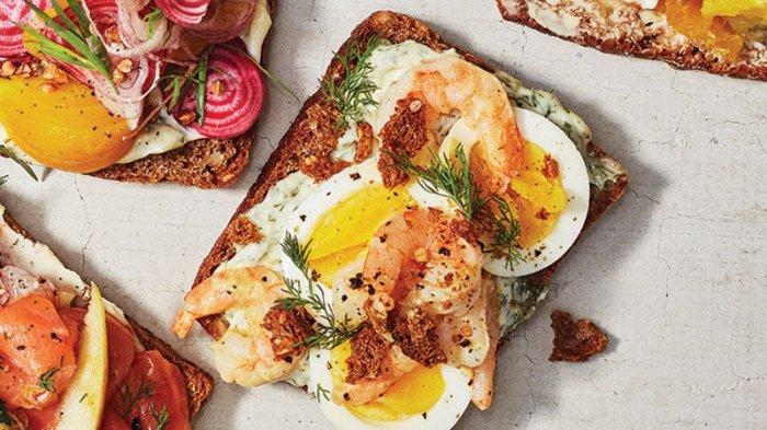 TRIBUNNEWSWIKI.COM - Smorrebrod merupakan hidangan khas Denmark berupa sandwich dengan isi irisan roti gandum coklat gelap, saus tipis, sepotong ikan, telur rebus, dan udang atau irisan daging.