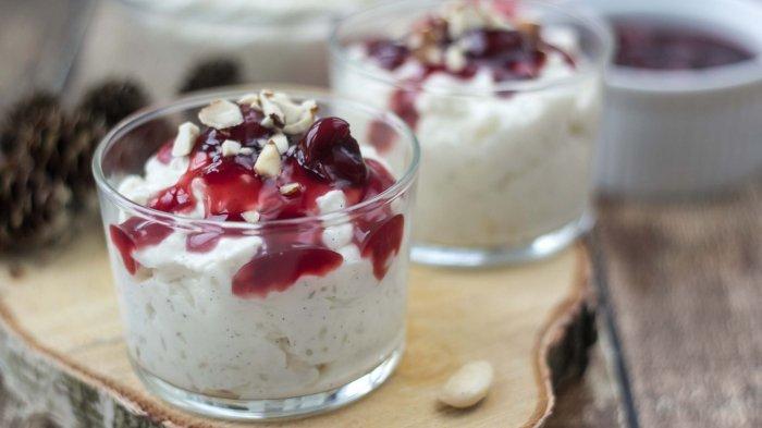 Puding nasi yang disiram dengan saus buah cherry dan whipped cream yang manis membuat risalamande cocok sebagai hidangan penutup atau dessert.