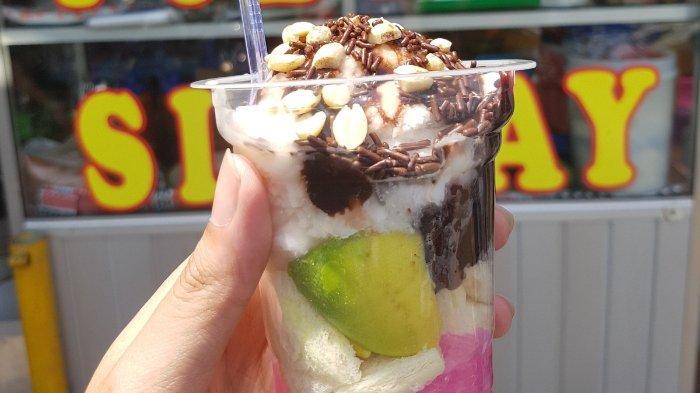 Setelah itu agar-agar tersebut dicampur dengan bahan lainnya seperti es puter, susu, cokelat dan roti tawar.
