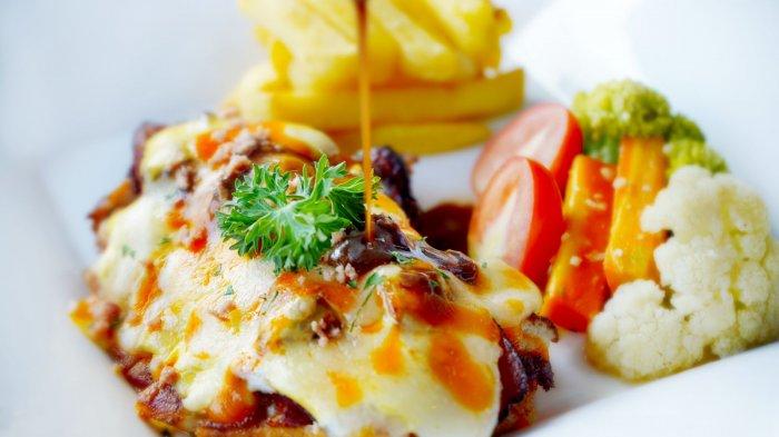 Selain itu, menu ini juga disajikan dengan kentang goreng, sayuran dan chicken jus,” jelas Chef Guston.