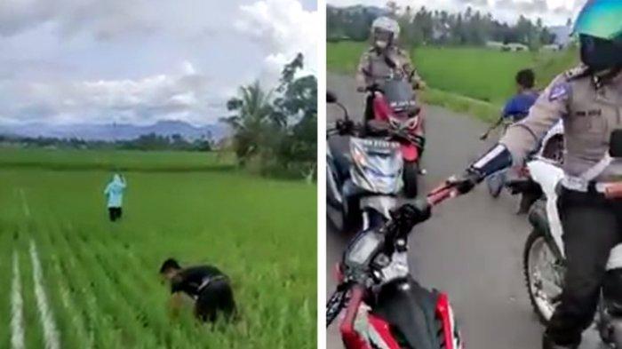 TRIBUNNEWSWIKI.COM - Sebuah video memperlihatkan dua orang pemuda berboncengan mengendarai sepeda motor yang berpura-pura menjadi petani saat bertemu polisi lalu lintas (polantas), viral di media sosial.
