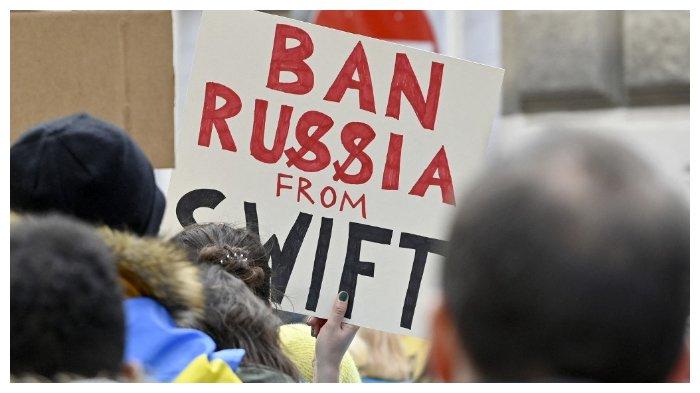Yakni berupa pemotongan bank-bank Rusia tertentu dari jaringan SWIFT global, mencabut kemampuan mereka untuk melakukan transfer lintas batas, dan memblokade akses bank sentral Rusia ke cadangannya.