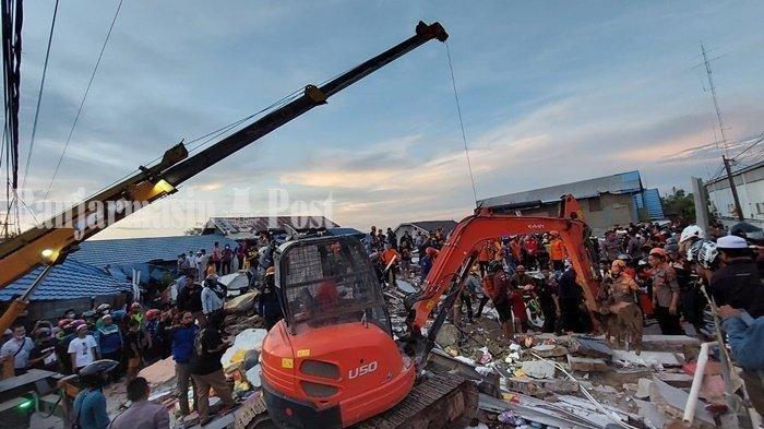 Mengutip Tribunnews.com, sebelum ambruk, saksi sempat menyaksikan bangunan miring ke kiri.