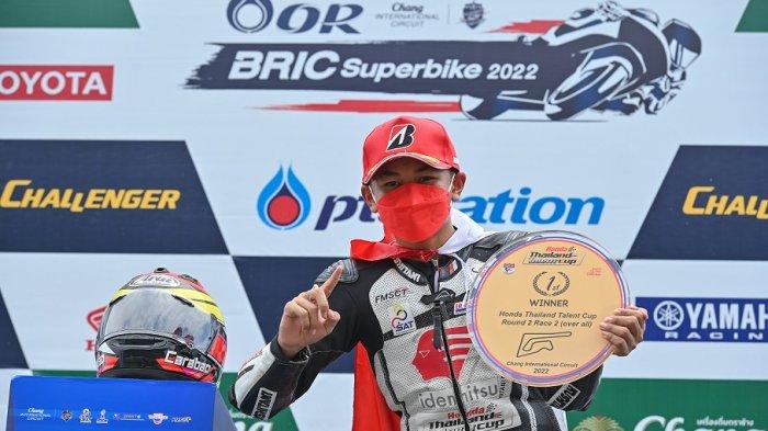 Salah satunya, Decksa Almer Alfarezel yang sukses berdiri di podium tertinggi Chang International Circuit, Thailand, dalam seri kedua ajang Thailand Talent Cup (TTC) 2022, Minggu (8/5).