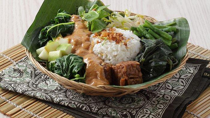 Satu porsi hidangan ini biasanya berisi aneka sayuran seperti jantung pisang, semanggi, genjer, kacang panjang dan kecambah. Sayuran tersebut kemudian disiram dengan bumbu kacang.