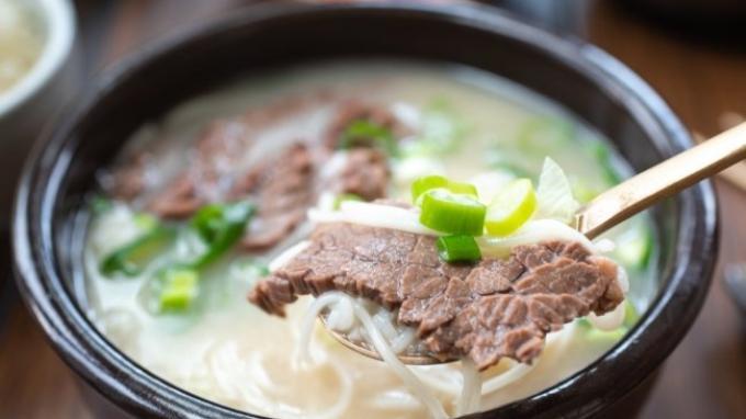 Hidangan Seolleongtang direbus dalam waktu yang cukup lama untuk mendapatkan gizi dari tulang sapi.