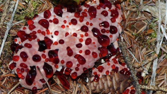 TRIBUNNEWSWIKI.COM - Hydnellum peckii atau dikenal dengan sebutan The Bleeding Tooth atau Jamur Gigi Berdarah, merupakan salah satu jenis jamur yang tidak beracun namun tidak dapat dikonsumsi karena rasanya yang pahit.
