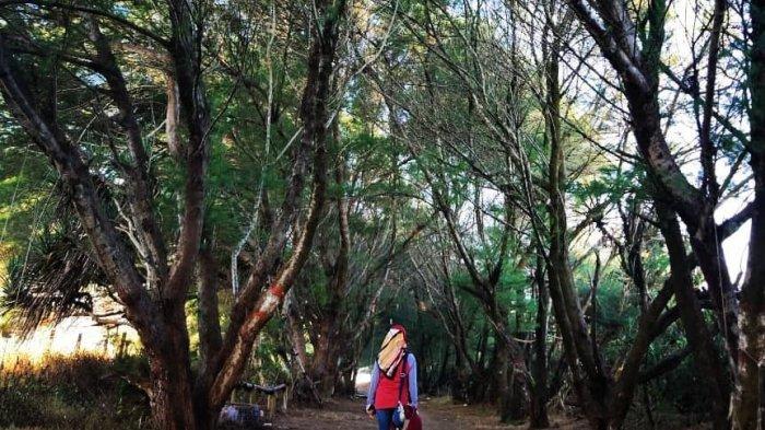 Di pantai ini terdapat jejeran pohon cemara yang membentuk terowongan yang rimbun.
