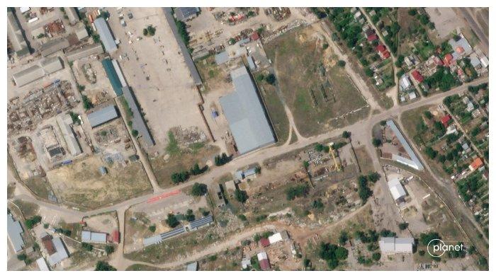 Foto satelit yang diambil July 11, 2022 dan dirilis oleh Planet Labs PBC memperlihatkan sebuah area di Nova Kakhovka, Kherson, yang akan menjadi target serangan Ukraina.