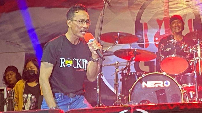 TRIBUNNEWSWIKI.COM - Wakil Bupati Sukoharjo, Agus Santosa, menghebohkan penonton saat naik ke atas panggung menyanyikan sebuah lagu rock di acara Sukoharjo Bermusik di Alun Alun Satya Negara, Kabupaten Sukoharjo, Selasa (26/7/2022) malam.