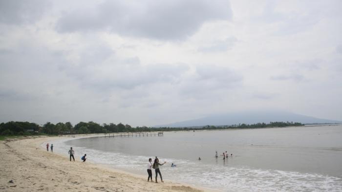Dari pantai ini, wisatawan bisa melihat pemandangan Gunung Rajabasa.