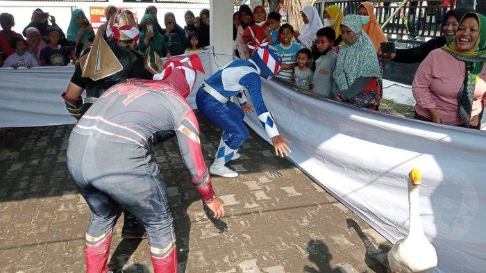 Dalam lomba ini, para "Superhero" itu turut ikut lomba kategori menangkap angsa dengan mata tertutup.