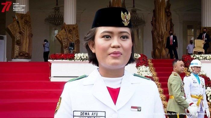 TRIBUNNEWSWIKI.COM - I Dewa Ayu Firsty Meita Dewanggi adalah pembawa baki bendera Merah Putih dalam Upacara Peringatan Detik-Detik Proklamasi Kemerdekaan RI di Istana Merdeka pada 17 Agustus 2022.