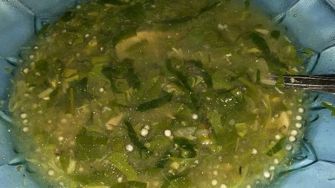 1. Cuci bersih 1 ikat sayur rampai, lalu dipotong kecil-kecil, dan sisihkan.