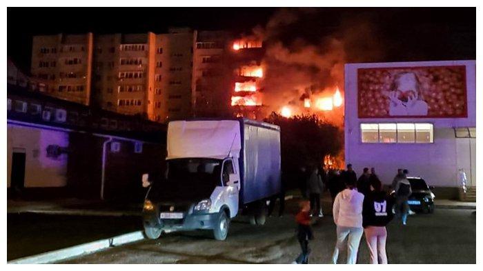 TRIBUNNEWSWIKI.COM - Sebuah jet tempur Su-34 Rusia jatuh dan menabrak gedung apartemen di Kota Yeysk, Rusia, dan menyebabkan kebakaran, (17/10/2022).
