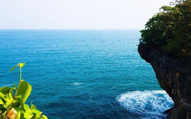 Pantai Karang Bokor memiliki daya tarik berupa pemandangan laut lepas dari atas tebing.