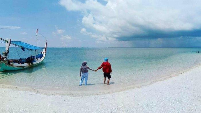 Tempat wisata ini memiliki pasir putih dan air pantai yang jernih.