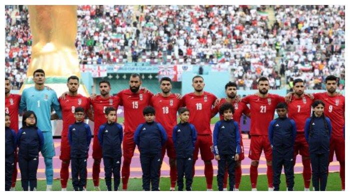 TRIBUNNEWSWIKI.COM - Tim sepak bola Iran memilih bungkam ketika lagu kebangsaan Iran dikumandangkan sebelum pertandingan Iran vs. England pada Piala Dunia 2022 di Qatar, (21/11/2022).