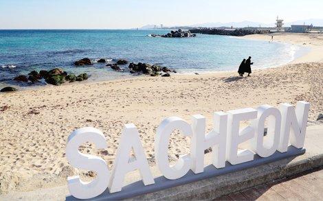 Pantai Sacheon terkenal sebagai resor musim panas untuk keluarga.
