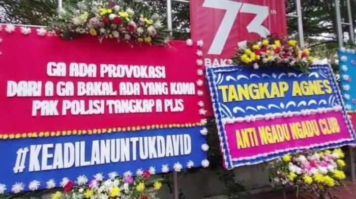 Banjir karangan bunga yang berisi permintaan untuk menahan Agnes Gracia yang disebut sebagai provokator penganiayaan yang dilakukan Mario Dandy