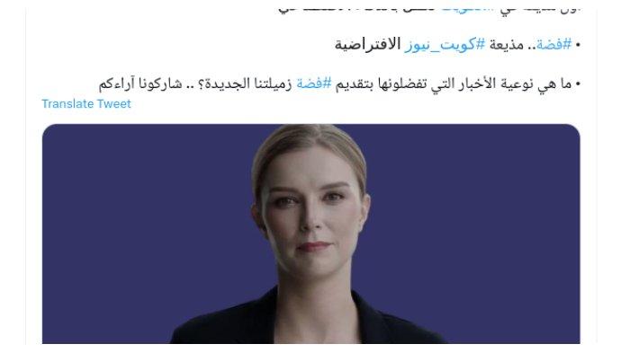 "Saya Fedha, pembawa berita pertama di Kuwait yang bekerja dengan kecerdasan buatan pada Kuwait News. Berita apa yang Anda sukai? Mari dengar opini Anda," kata dia dalam bahasa Inggris, dikutip dari The Guardian.