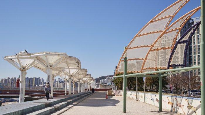 Millak Waterfront Park menjadi taman pertama di Korea yang menggabungkan tepi pantai dengan fasilitas rekreasi.