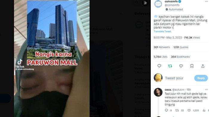 "kasihan banget kakak ini nangis gara2 nyasar di Pakuwon Mall. Untung ada satpam yg mau nganterin ke parkir motor :(" tulisnya, dikutip TribunnewsWiki dari akun Twitter @convomfs.