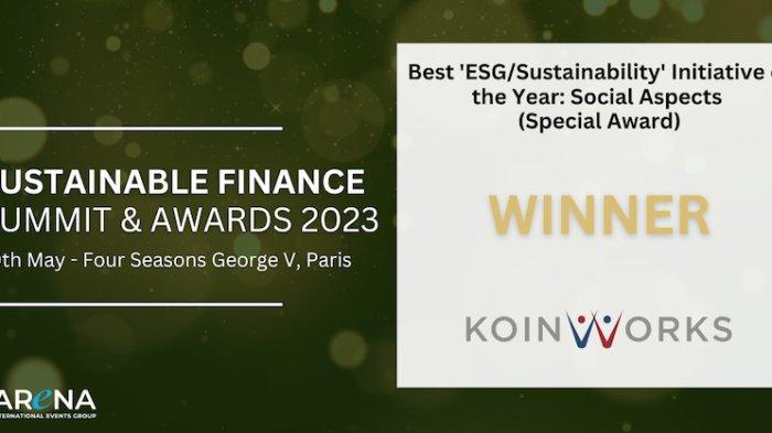 TRIBUNNEWSWIKI.COM - KoinWorks, neobank UMKM pertama di Indonesia, berhasil meraih penghargaan internasional sebagai “Best ESG/Sustainability Initiative of The Year: Social Aspect (Special Award)” dalam Sustainable Finance Summit & Awards 2023 di Paris, Prancis.