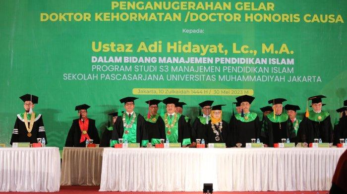 TRIBUNNEWSWIKI.COM - Universitas Muhammadiyah Jakarta (UMJ) menganugerahkan gelar kehormatan Doctor Honoris Causa untuk Ustaz Adi Hidayat, Lc., M.A dalam bidang Manajemen Pendidikan Islam, Selasa (30/05/2023).