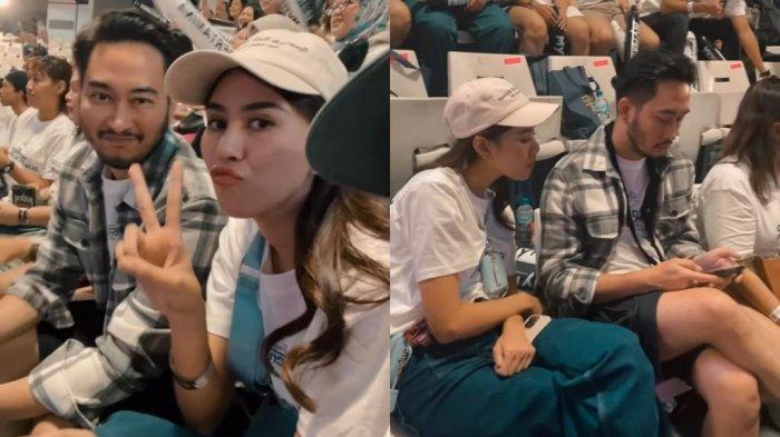 Dalam postingan itu, tampak Jeje dan Syahnaz duduk bersebelahan di tirbune penonton.