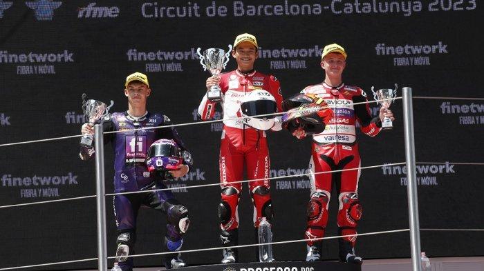Untuk pertama kalinya dalam kejuaraan balap di benua Eropa, bendera Merah Putih berkibar paling tinggi diiringi lagu Indonesia Raya pada putaran kelima balap kedua ajang kejuaraan balap dunia junior ini di Circuit de Barcelona-Catalunya pada Minggu, 16 Juli 2023.