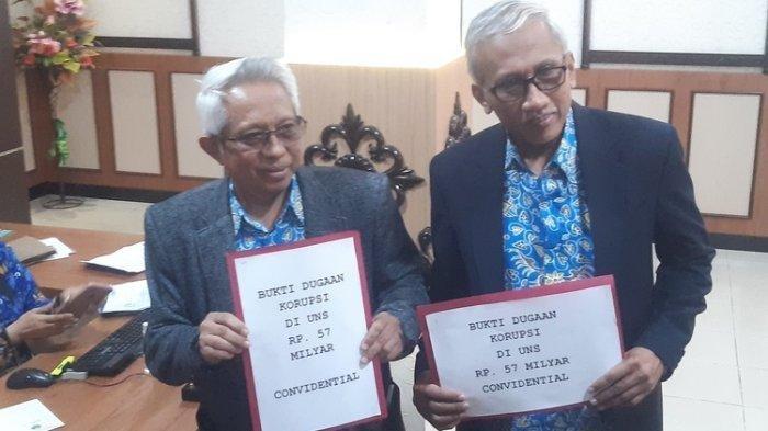 Dugaan korupsi juga disampaikan eks pimpinan Majelis Wali Amanat (MWA) UNS Solo, Hasan Fauzi dan Tri Atmojo.
