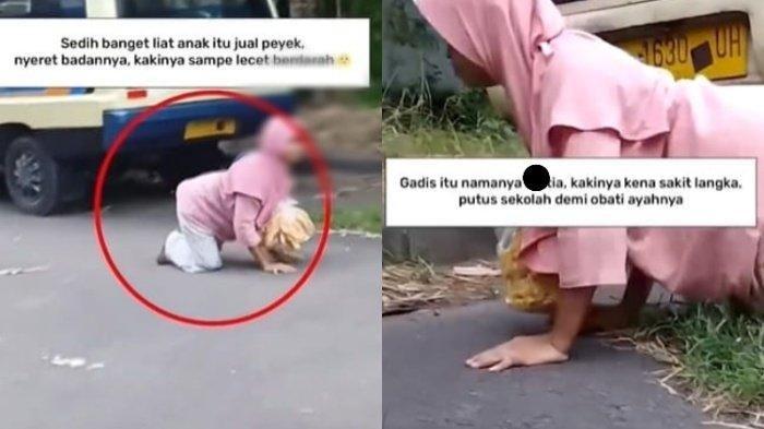 Sebuah video yang menggambarkan anak berjualan rempeyek sambil merangkak viral di media sosial.