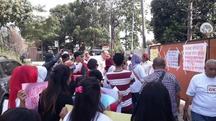 Pantauan TribunnewsBogor.com, massa unjuk rasa ini berkumpul di depan gerbang pintu masuk rumah Rocky Gerung.