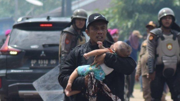 TRIBUNNEWSWIKI.COM - Media sosialdibuat terenyuh dengan beredarnya foto viral seorang bapak yang gendong bayinya yang pingsan terkena gas air mata saat bentrok di Rempang Batam.