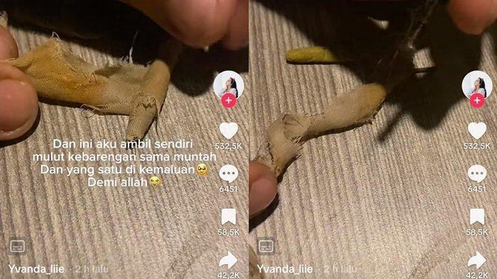 Alangkah mengejutkannya, Yovanda menemukan dua benda aneh berisi paku dan rambut yang dibungkus perban dari muntahan dan kemaluannya.