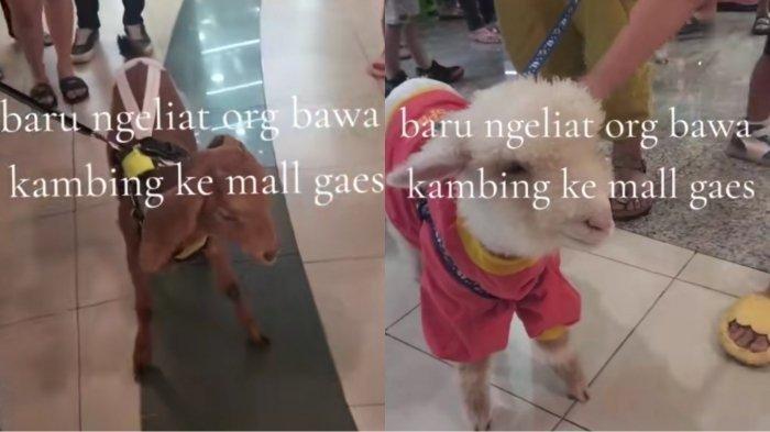 "Baru ngeliat orang bawa kambing ke mall gaes," isi narasi dalam video itu.