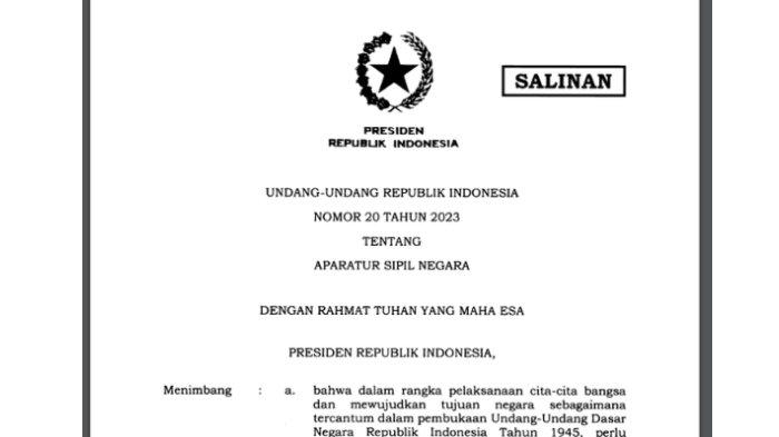 TRIBUNNEWSWIKI.COM - Presiden Joko Widodo (Jokowi) resmi menetapkan Undang-Undang Nomor 20 Tahun 2023 tentang Aparatur Sipil Negara (UU ASN) pada 31 Oktober 2023.