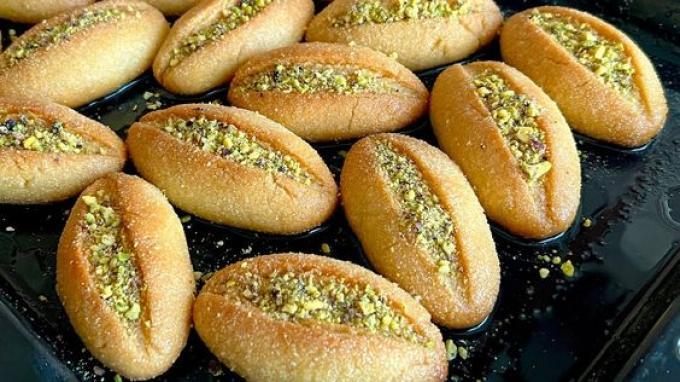 Badem tatlisi adalah kue tradisional Lebanon yang terpengaruh oleh masakan khas Turki.