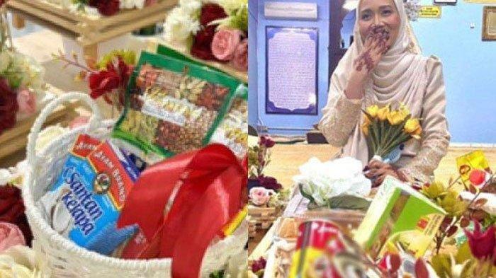 Seperti yang diunggah di TikTok, Nida memperlihatkan nampan seserahan berisi bawang bombay, kentang, bunga kantan, jahe, kunyit, lengkuas, dan jeruk nipis.