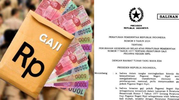 Kenaikan gaji PNS tahun 2024 ini diatur dalam Peraturan Pemerintah (PP) Nomor 5 Tahun 2024 tentang Perubahan Kesembilan Belas Atas Peraturan Pemerintah Nomor 7 Tahun 1977 Tentang Peraturan Gaji Pegawai Negeri Sipil (PNS).