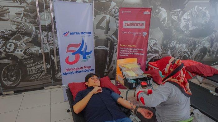 TRIBUNNEWSWIKI.COM - Astra Motor selaku Main Dealer sepeda motor Honda menggelar aksi “Donor Darah Serempak #SatuTetes”. Bertempat di Astra Motor Jateng, aksi donor ini menjadi acara pembukaan serangkaian HUT ke-54 Tahun Astra Motor (07/06/24).
